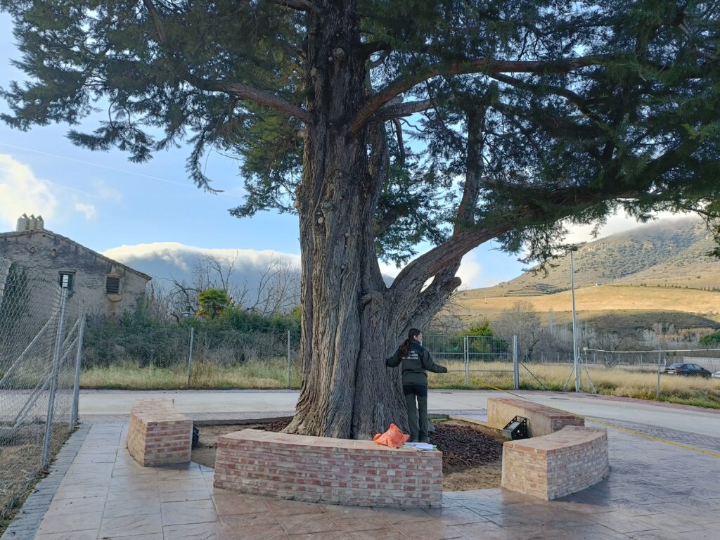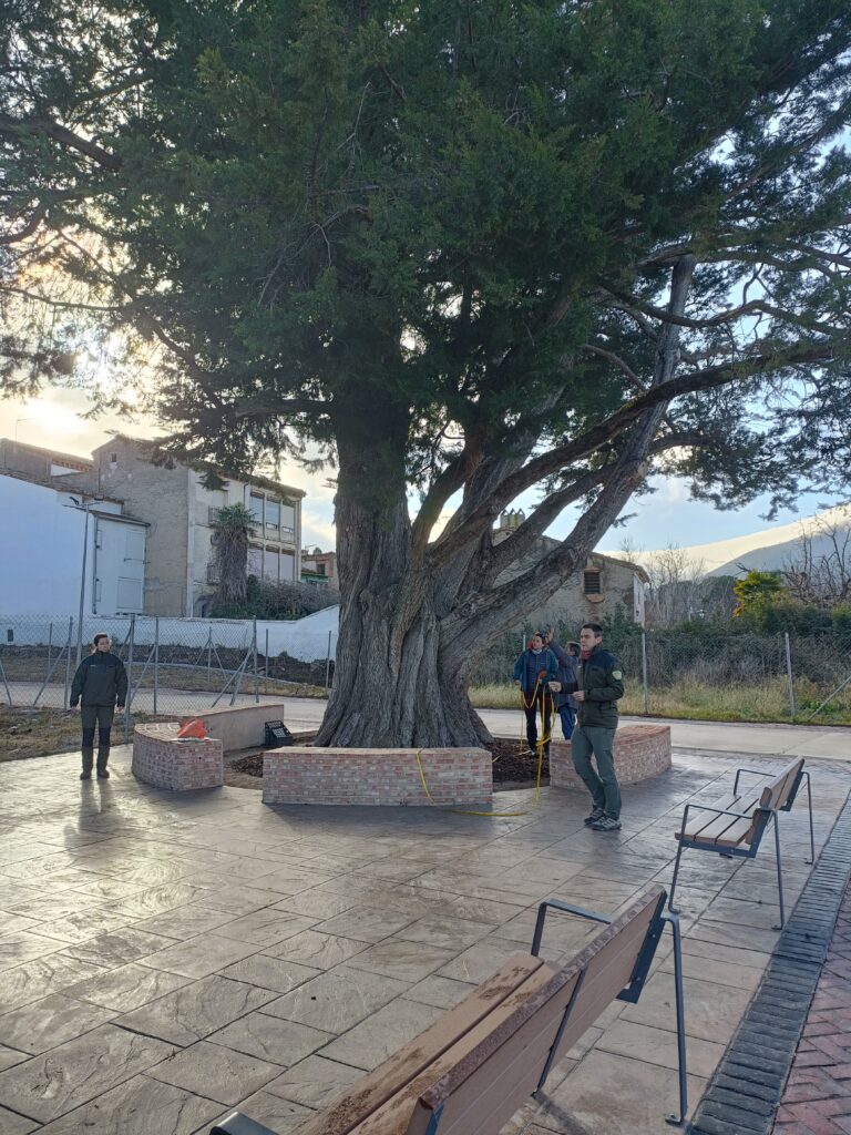 El pasado 13 de febrero de 2025 acudieron dos técnicos del Servicio Provincial de Medio Ambiente de Zaragoza, acompañados por dos forestales de Illueca, para tomar medidas del ciprés.
