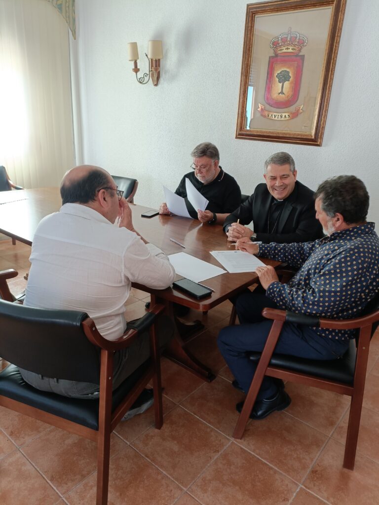 Ayer 30 de mayo en el Ayuntamiento de Saviñán, el obispo de Tarazona, Vicente Rebollo, y el Presidente de la Comarca Comunidad de Calatayud, Ignacio Marcuello, firmaron un convenio de colaboración para la puesta en marcha de actividades relacionadas con el patrimonio religioso y el turismo de la zona.