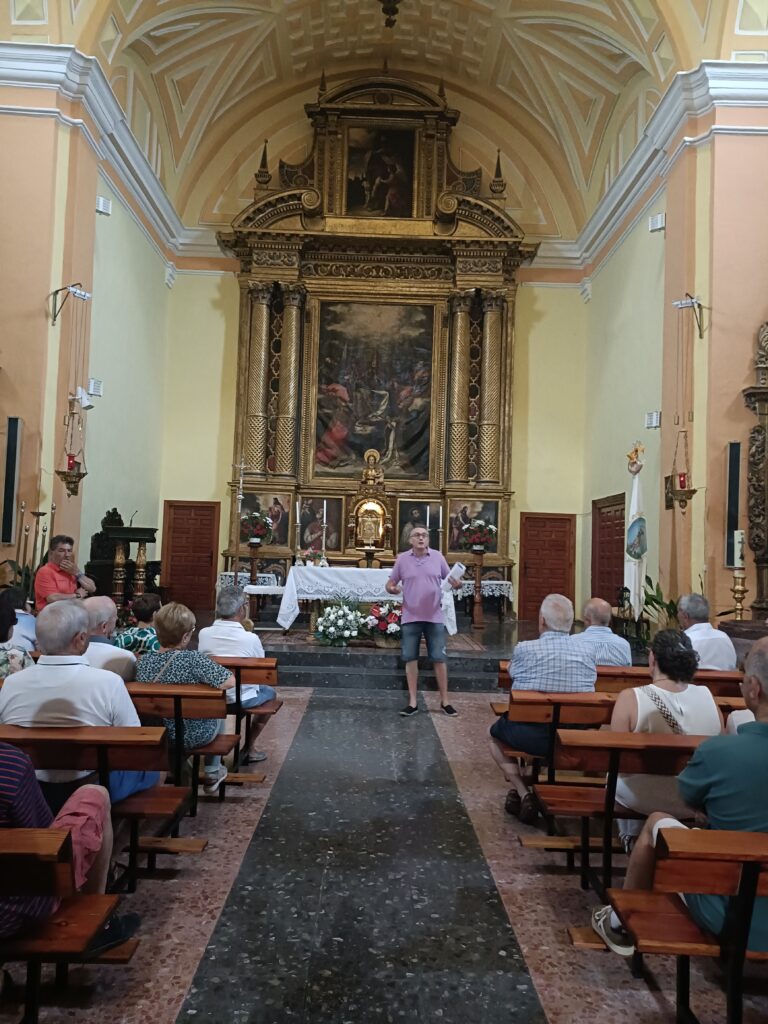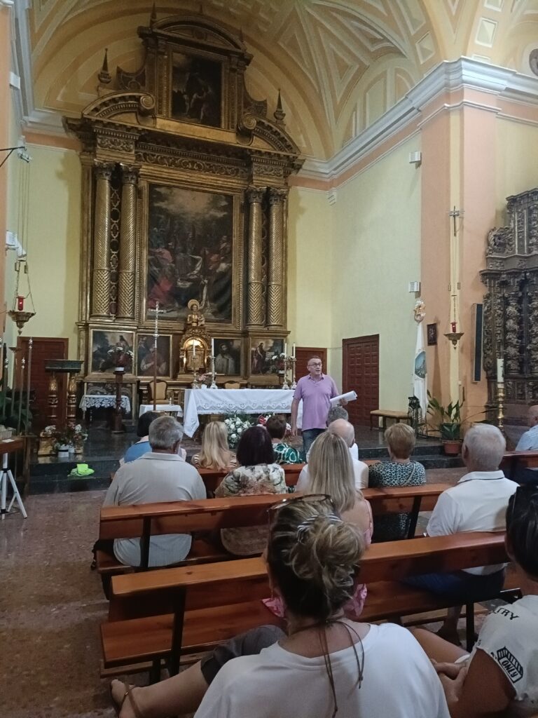 La tórrida tarde del día de la Virgen desafiamos al calor con un recorrido por los “lugares secretos y misteriosos”, que no se visitan, de nuestra iglesia parroquial. El tour transitó por la cripta de Santa Ana, que causó honda impresión en los visitantes, continuo por el coro, una habitación secreta y finalizó en el campanario, conjurando a las tormentas. También recorrimos la capilla de San Antón, la sacristía…etc.; contando leyendas, crímenes reales, misterios y hechos curiosos desconocidos. La asistencia desbordó todas las previsiones, con personas de todas las edades,lo que nos obligó, muy gustosamente, a realizar la segunda parte al día siguiente, el día del Patrón.