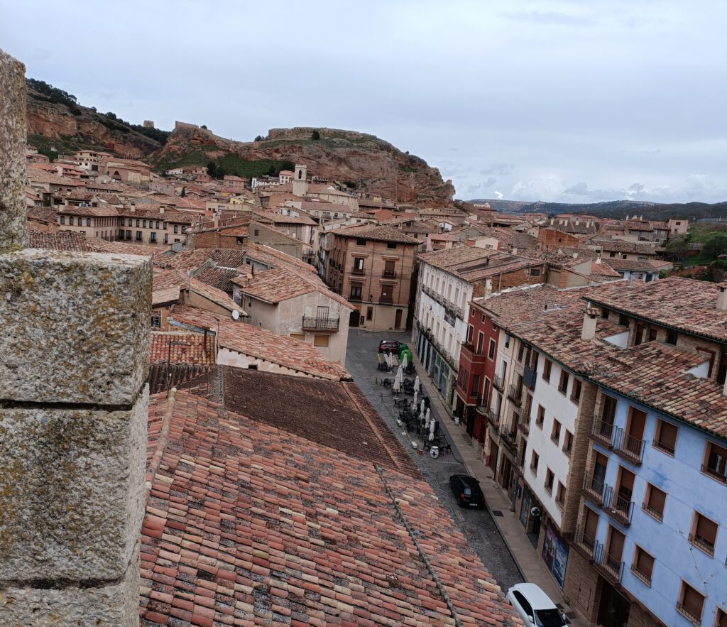 Pascual nos abrió las puertas de la Puerta Baja y por unas escaleras de caracol pudimos dar con el cielo de Daroca, desde donde se contempla la ciudad a vista de pájaro, a los cuatro puntos cardinales. Murallas, torreones, el castillo mayor, el pinar que fue inaugurado en 1909, en una Fiesta del Árbol organizada por los padres escolapios, estrenándose el Himno de Daroca, con letra del padre Beltrán y música del maestro Marquina, las torres de las antiguas parroquias y de la basílica, los tejados de las casas, la ermita de Nazaret, la vega de la ciudad…